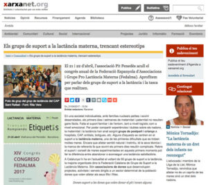 En Xarxanet se hicieron eco del Congreso Fedalma organizado por el grupo Pit Penedés, bajo el título de «Els grups de suport a la lactància