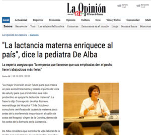 Publicado en el diario de Zaragoza La Opinión: De Alba considera que conciliar la vida laboral de la madre con la lactancia, no es imposible,